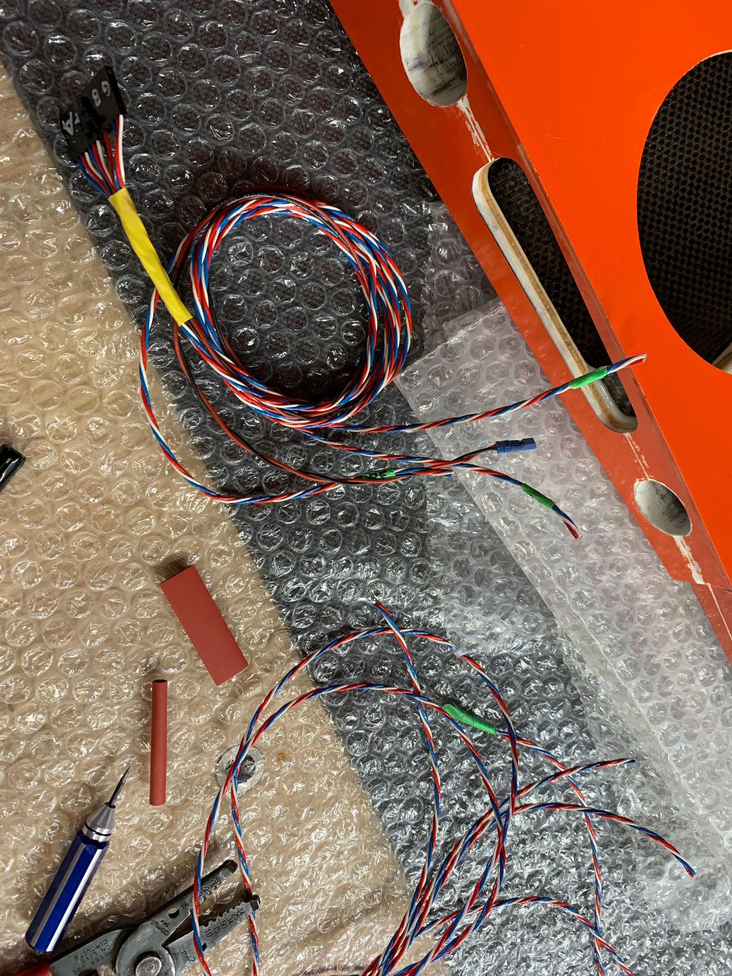 Fuselage side wiring harnesses made up.