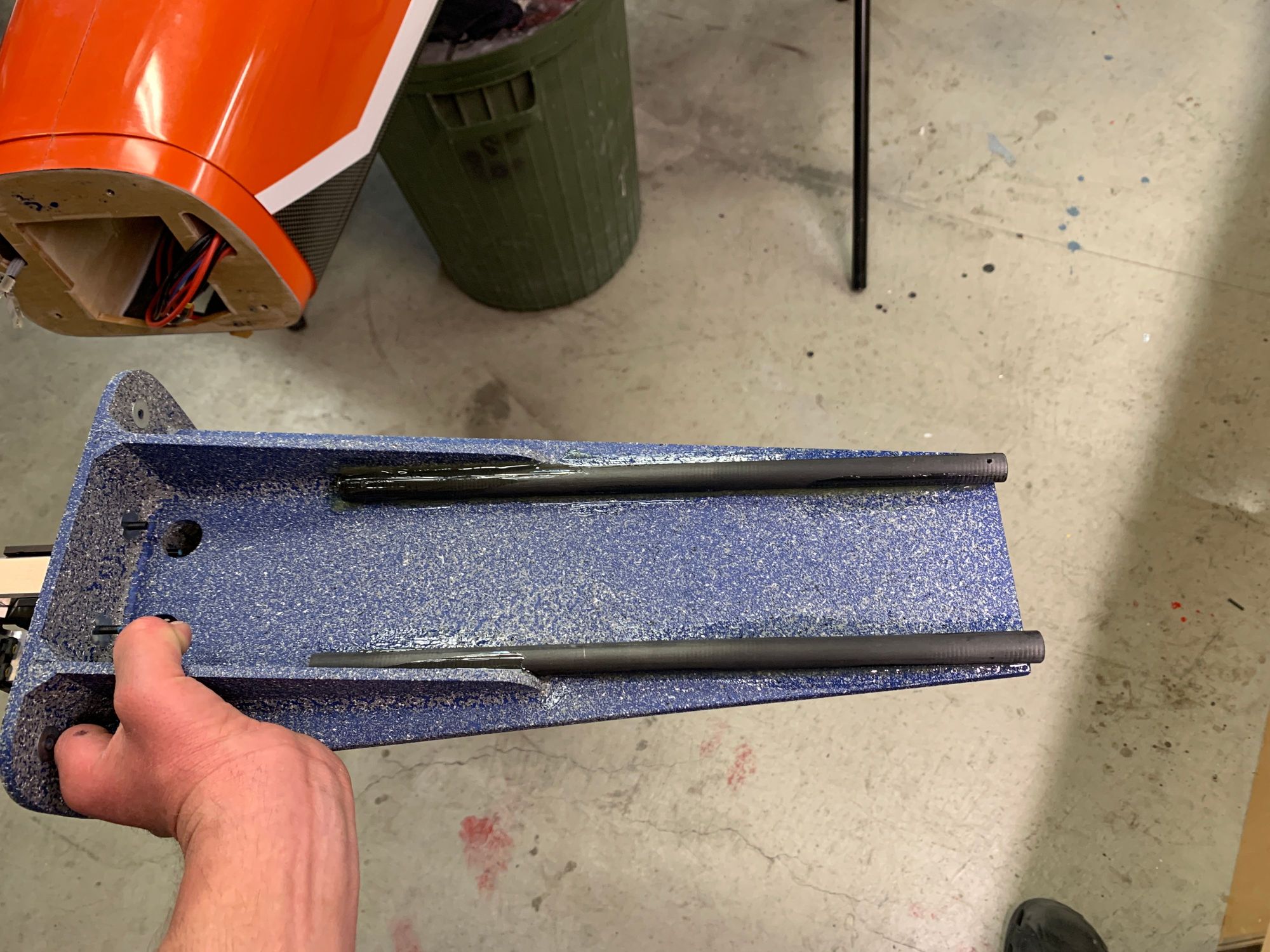 Nose weight a non issue and needed to get batteries as far forward in tray as possible. Glued some spare carbon tubes on the underside of the nose.