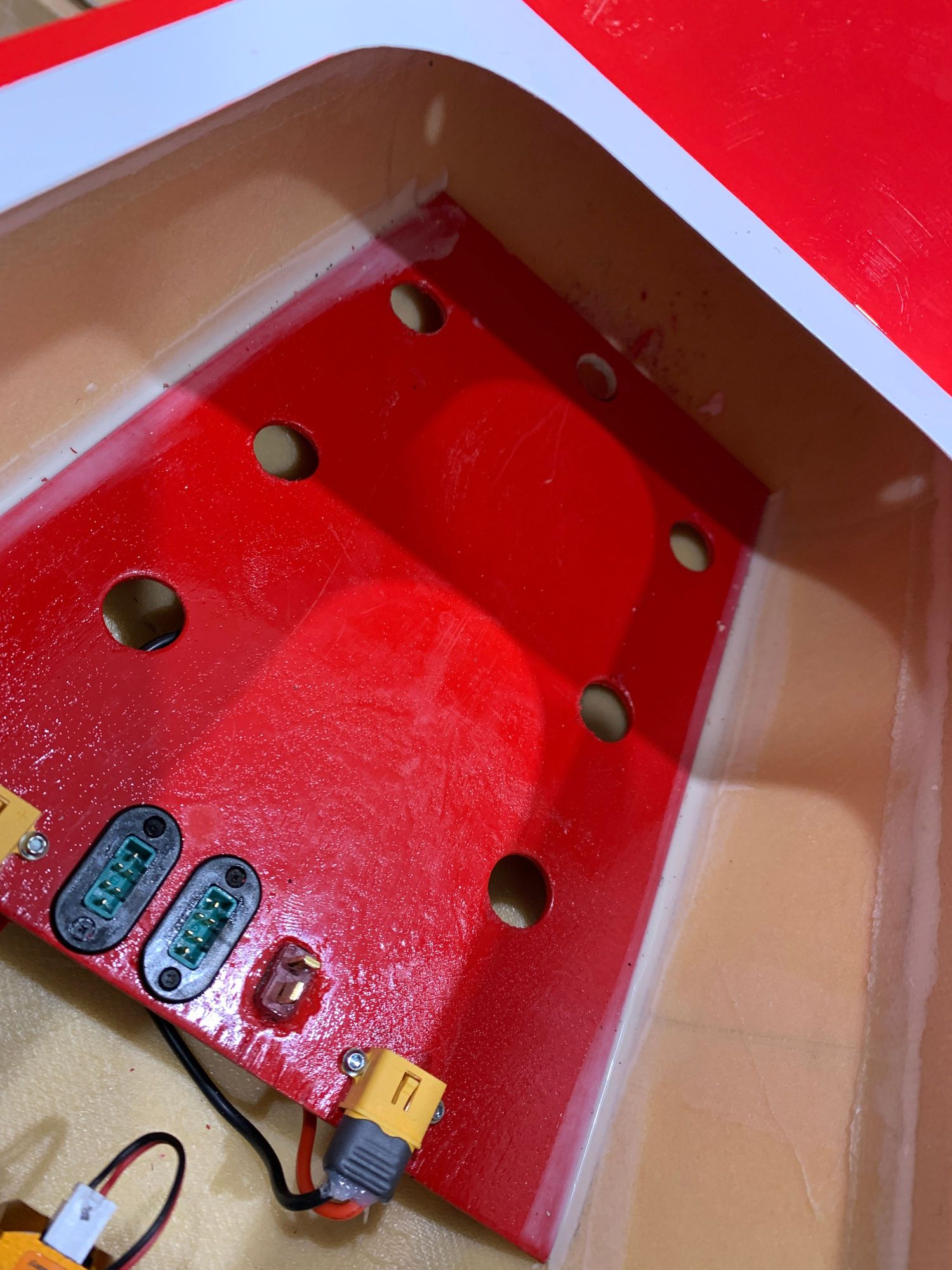 Installed all the battery plugs on the front tray. . at the very front of the tray you can see the center hole. This is the receiving hole for the battery tray.